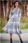Rozšířené midi šaty se 3/4 rukávy kostkované A334