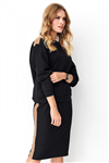 ato sada je módní HIT. Skládá se z mikiny s dlouhým rukávem a ze sukní po kolena. Horní a spodní část sady má vložky z ekokože. Celek vypadá skvěle. Celková výhoda tohoto modelu spočívá v tom, že můžete libovolně kombinovat a skládat styly pomocí každého prvku zvlášť.