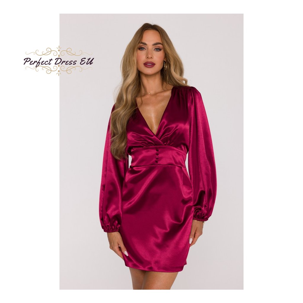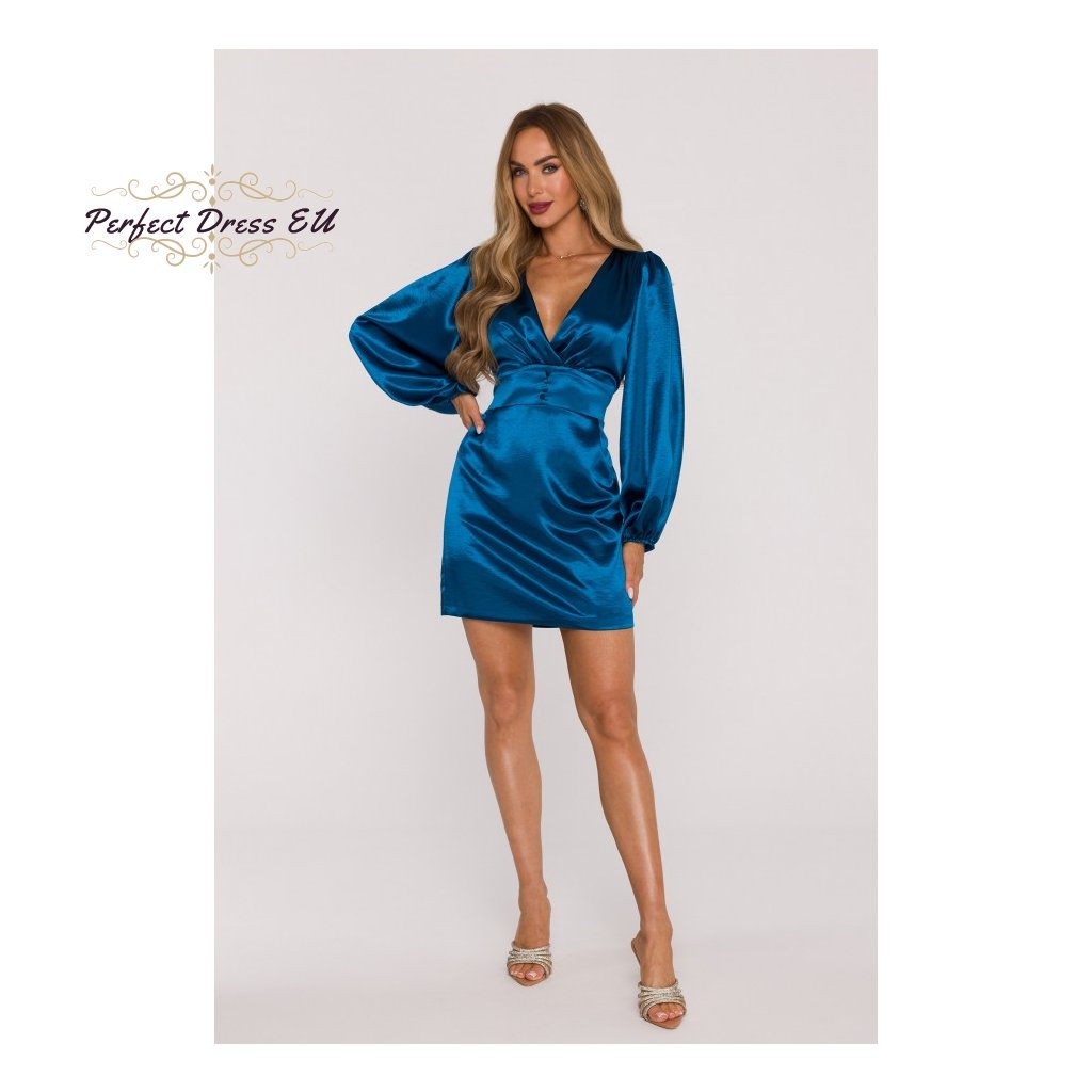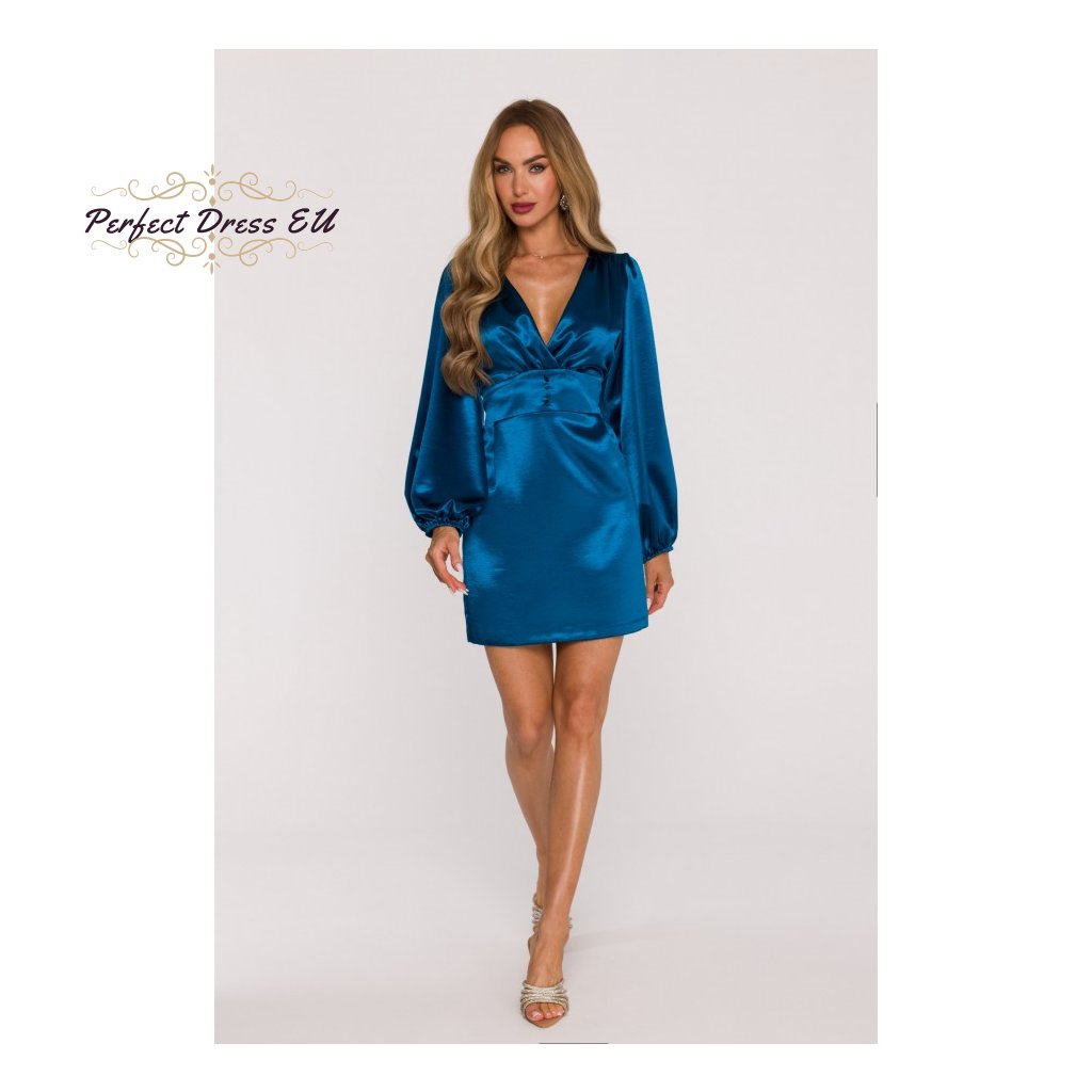 Saténové minišaty s nafouklými rukávy M888