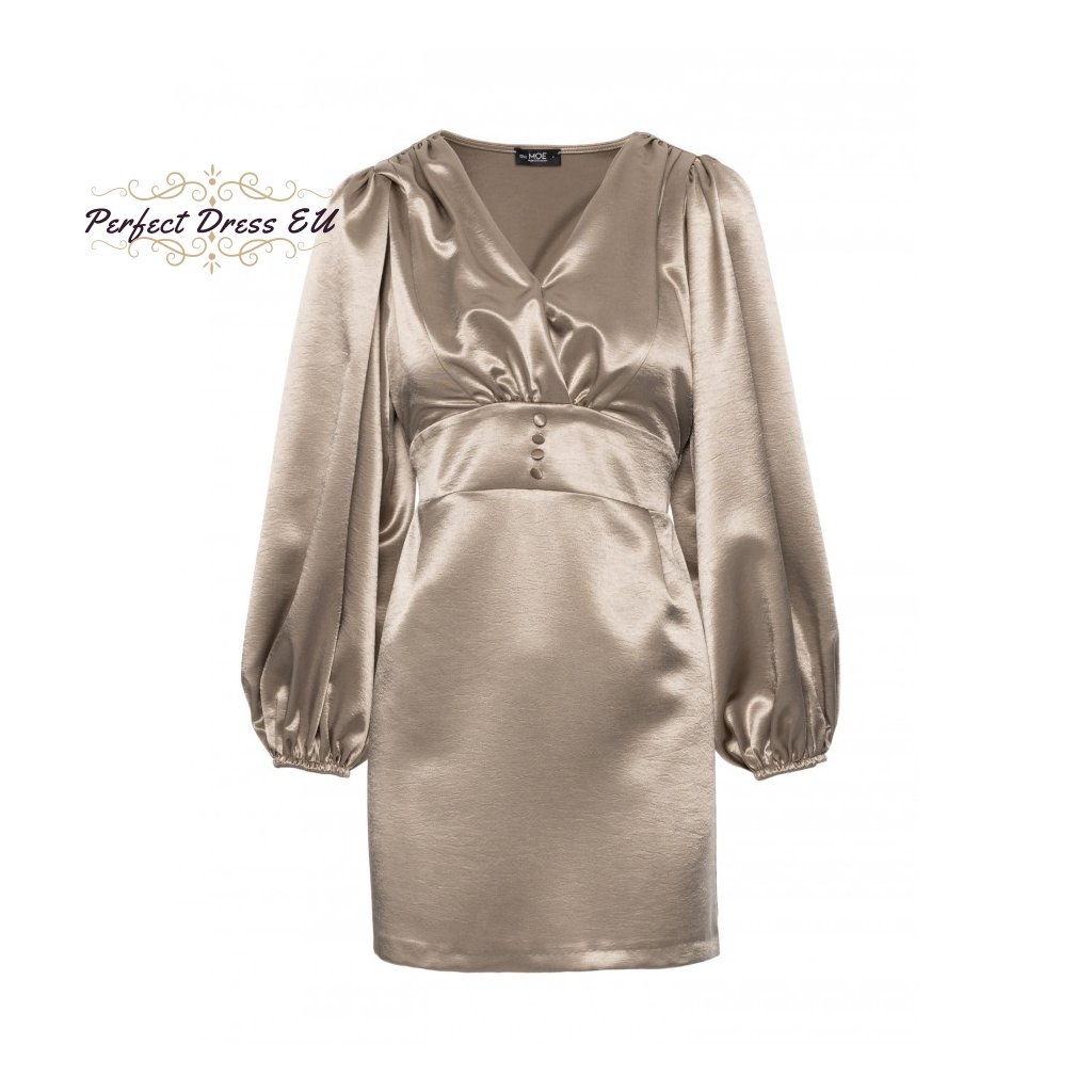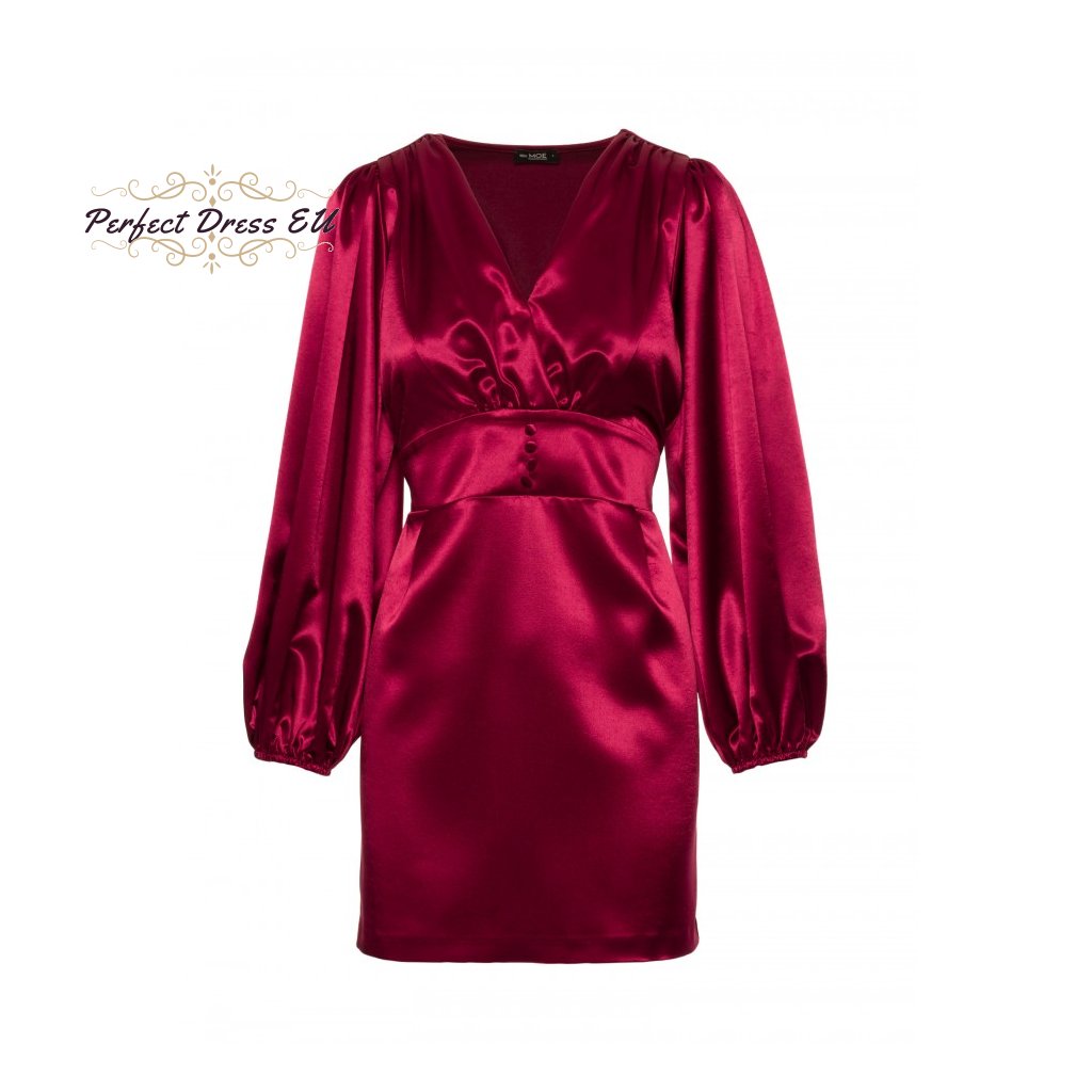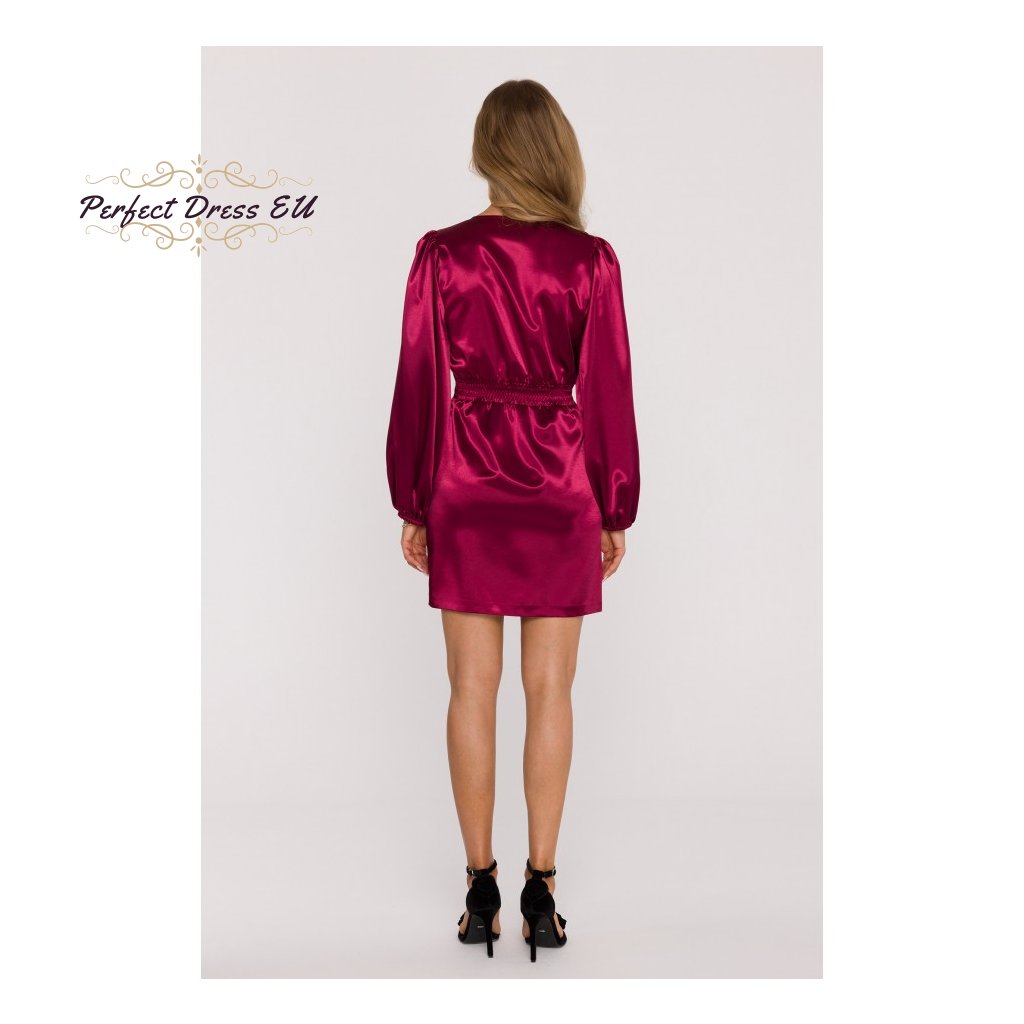 Saténové minišaty s nafouklými rukávy M888