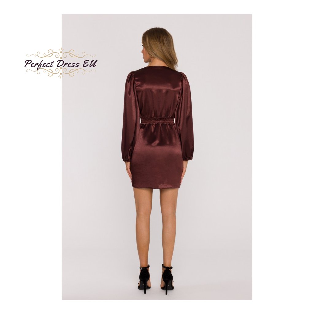 Styl: elegantní saténové minišaty se zavinovacím