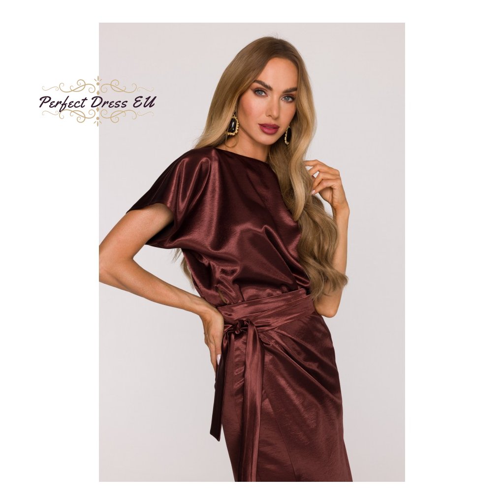Střih: volný top, který lze zastrčit do sukně nebo nosit přes ni, zavinovací sukně ve stylu pareo s vázáním kolem pasu
