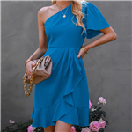 Patricia - exkluzivní asymetrické šaty s delším zadním dílem, krátkým rukávem, výstřihem a krajkou - chrpově modrá. Na tanec se skvěle hodí sukně s delším zadním dílem. Polská výroba. Značka Numoco.