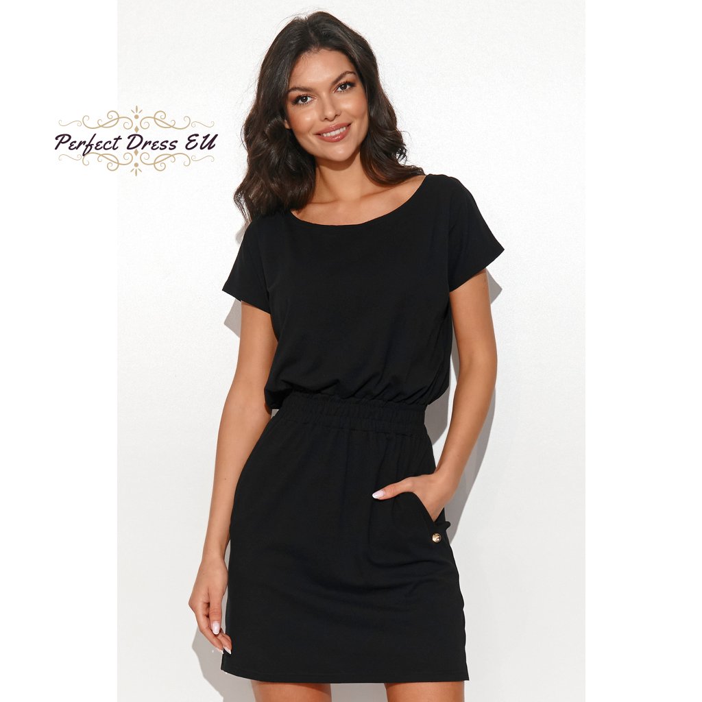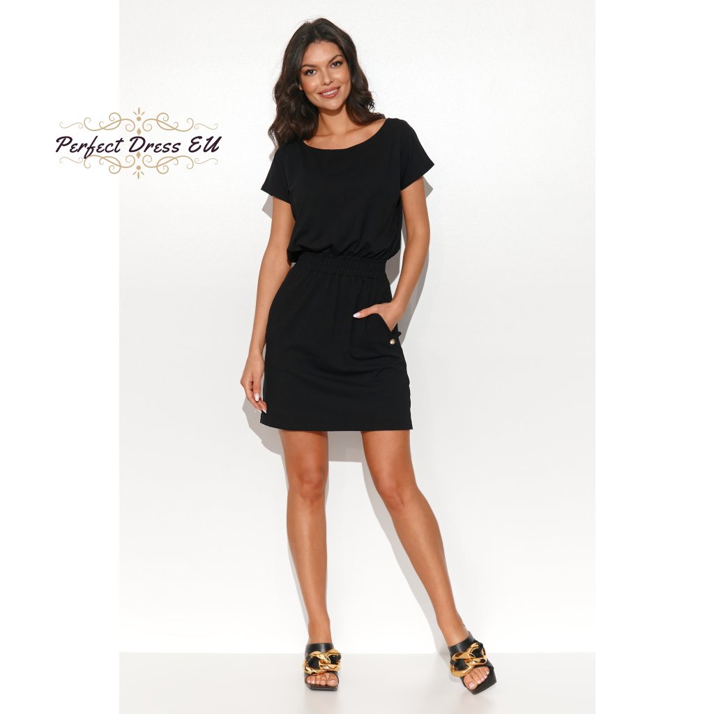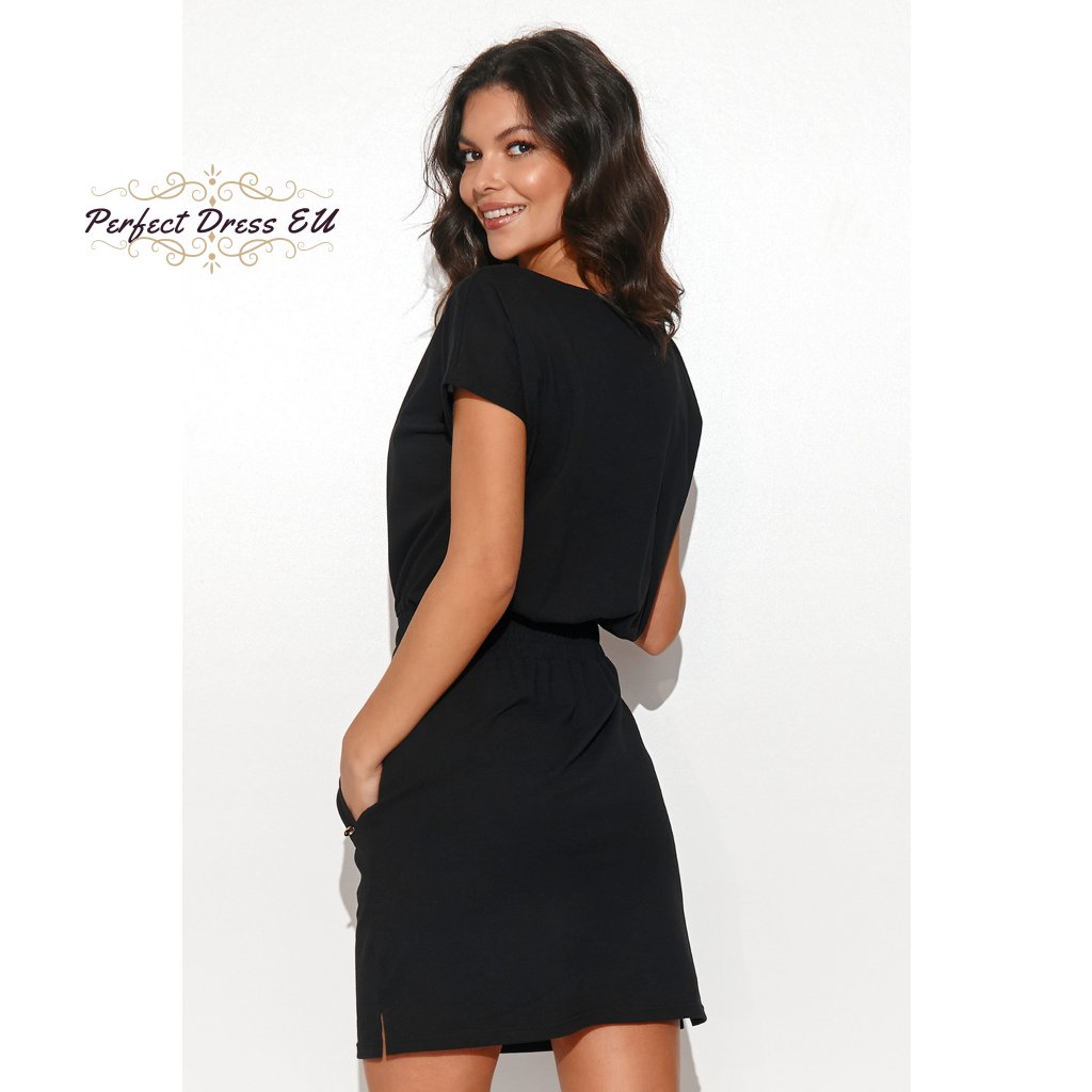Černé koktejlové midi šaty s řasením M709