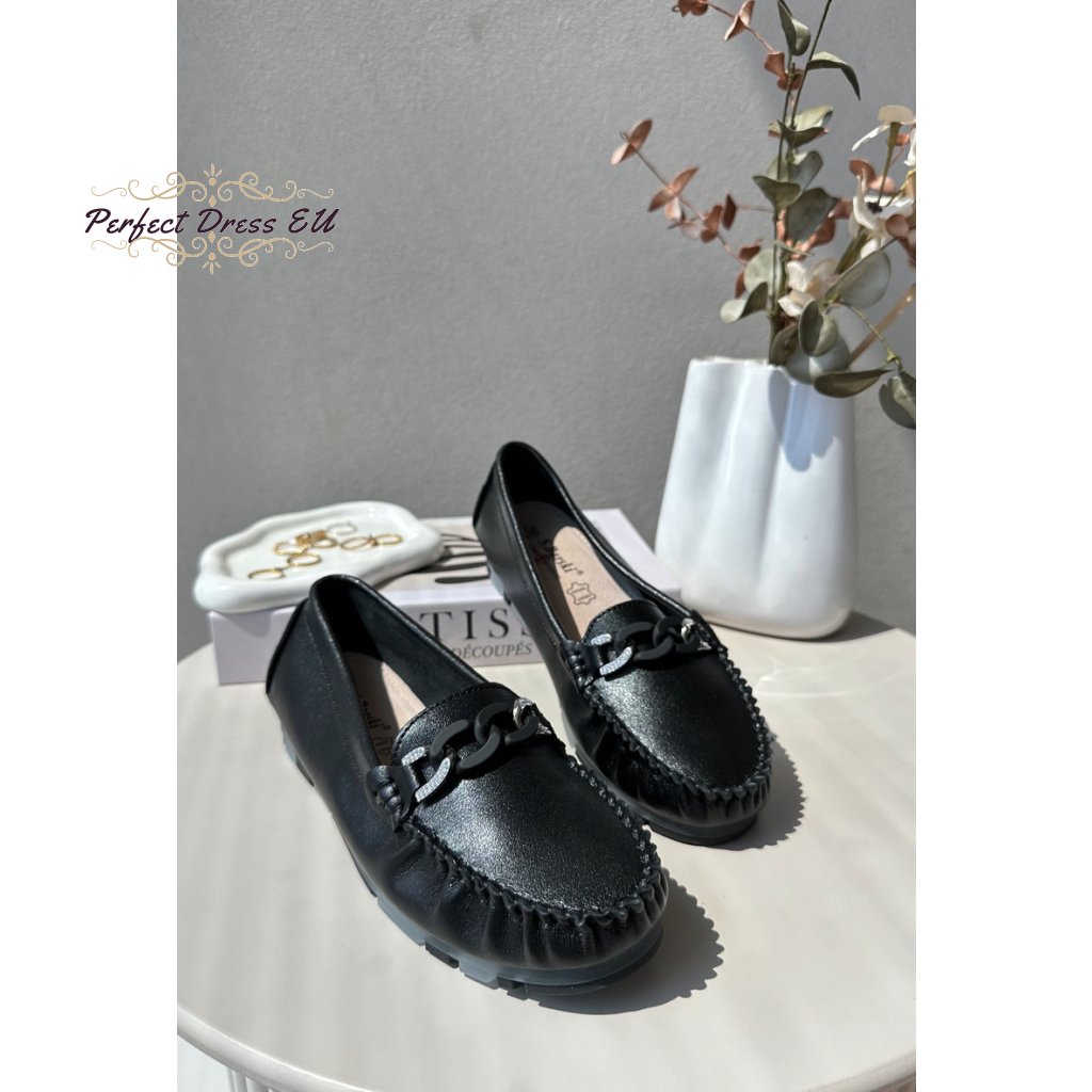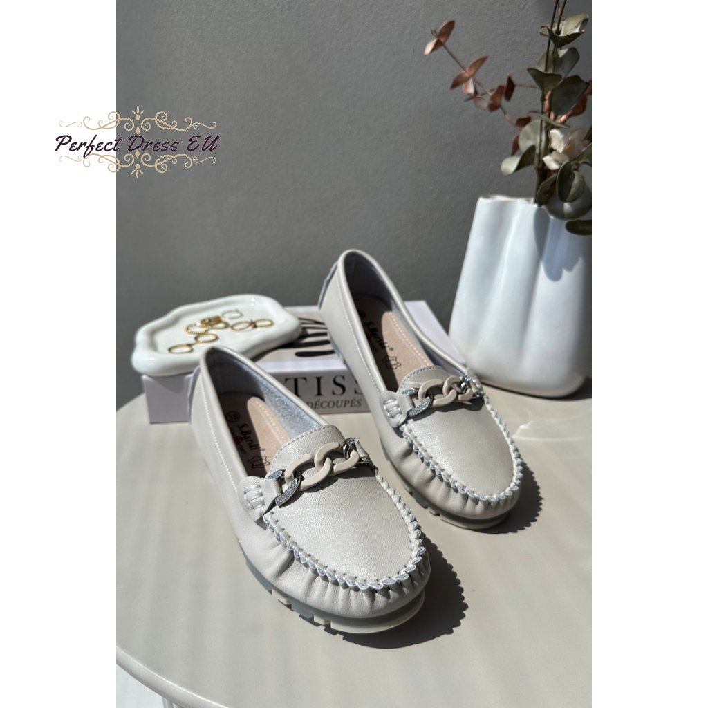 Dámské mokasíny značky S.Barski jsou kombinací módního designu s pohodlím nošení. Pryžová podrážka zajišťuje stabilitu a tlumení. Dodatečný šarm jim dodává ozdobný řetízek umístěný vpředu. Měkká vložka zaručuje pohodlí během celého dne. To je skvělá volba pro ženy, které si cení nejen stylu, ale také pohodlí. Při výběru velikosti se řiďte tabulkou velikostí.