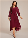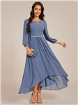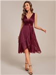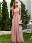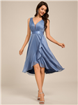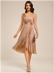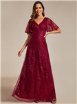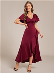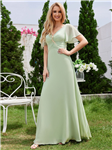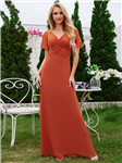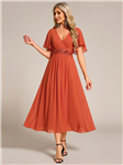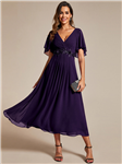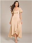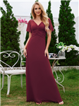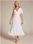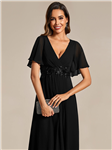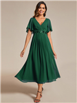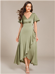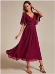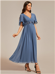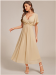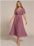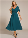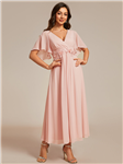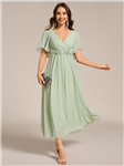 Tyto šifonové šaty pro družičku mají vlající řasené rukávy, lichotivou siluetu A a vysoký pas, zvýrazněný nařaseným výstřihem do V pro elegantní dotek.