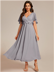 Šifonové šaty pro družičku s volánovými krátkými rukávy