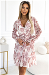 Šifonové šaty s volány, výstřihem, dlouhými rukávy a páskem. Vzor: béžové květy. Základní značka Numoco. evropská produkce.