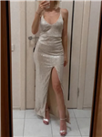 Představujeme naše zcela nové flitrové šifonové společenské šaty s vysokým pasem s kulatým výstřihem a krátkými rukávy! Tento úžasný komplet je perfektní volbou pro jakoukoli formální večerní událost. Kulatý výstřih a Krátké rukávy nabízejí klasický a elegantní vzhled, zatímco detaily flitrů dodávají nádech půvabu a třpytu. Šifon Materiál je lehký a splývavý a vytváří půvabnou siluetu. Design s vysokým pasem zvýrazní vaše křivky a dodá vám lichotivý a ženský vzhled. Nenechte si ujít tyto šaty, které musíte mít, díky kterým budete vyčnívat z davu! .