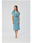 Volné business šaty se stojatým límcem a ozdobnými knoflíky S189