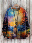 Chlupatý svetr pletený s ažurovými vzory 30059