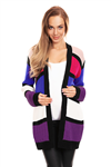| Podrobnosti: Těhotenský kardigan. Barevné bloky v trendy barvách. Oversize střih. Měkká příze. | Rozměry produktu: Celková délka 70 cm Délka rukávu 62 cm Šířka přes prsa 46 cm Složení: 100% akryl |