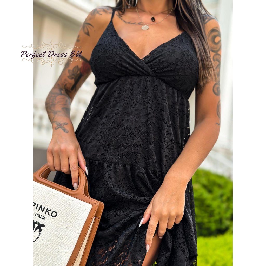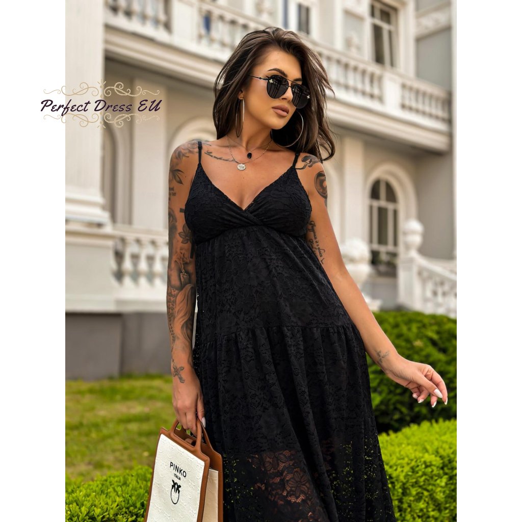 Tenké krajkové maxi šaty na ramínka - DLR115