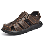 Pánské kožené sandály s pásky na suchý zip a šňůrkou