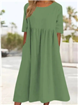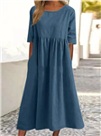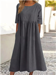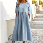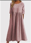 Bavlněné Maxi šaty s výstřihem do V a dlouhým rukávem