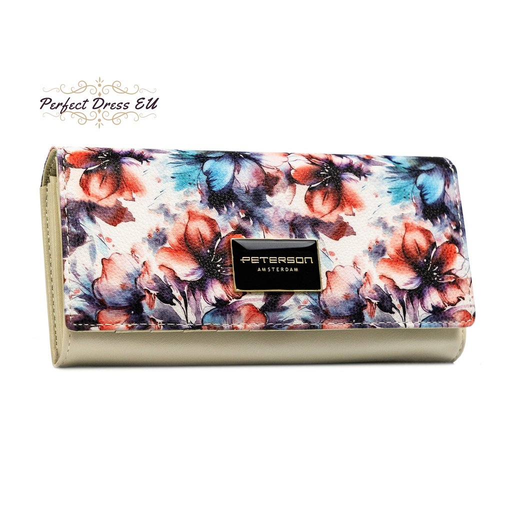 Velká dámská peněženka s květinovým vzorem z přírodní a eko kůže s RFID systémem - Peterson
