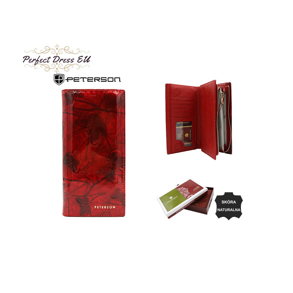Vertikální dámská kožená peněženka s magnetem a zipem - Peterson