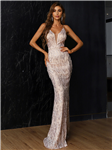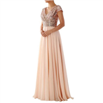 Dlouhé třpytivé šaty flitrované s krátkými rukávy