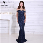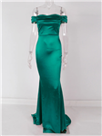 Elegantní dlouhé lesklé šaty na jedno rameno s mašlí 528-1