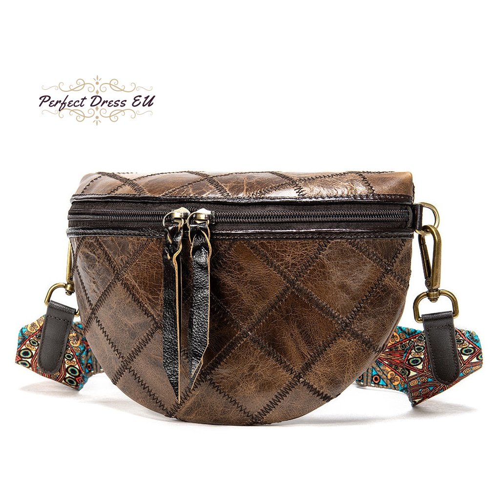 prémiová kožená dámská kabelka do pasu se širokým popruhem