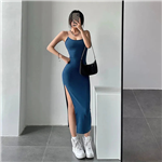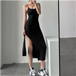 Saténové maxi šaty s výstřihem a boho stylem 609-1