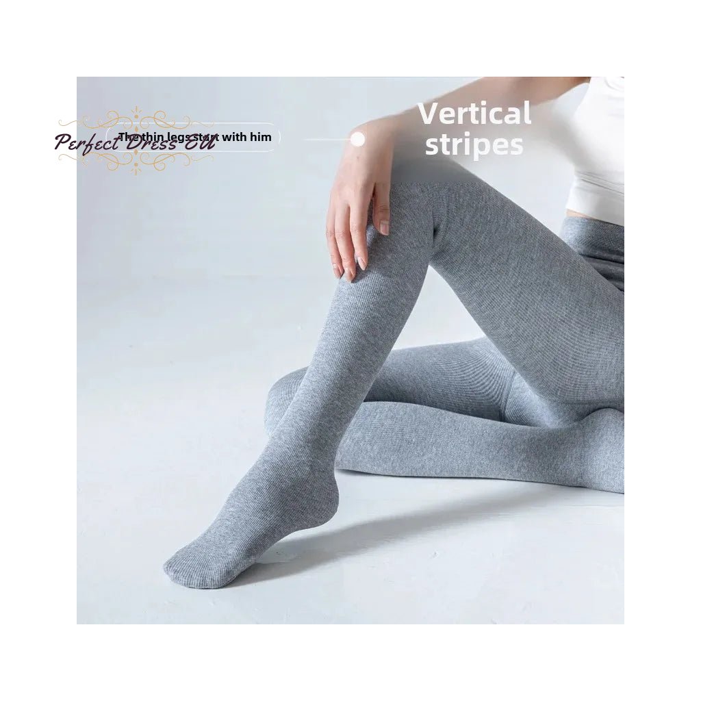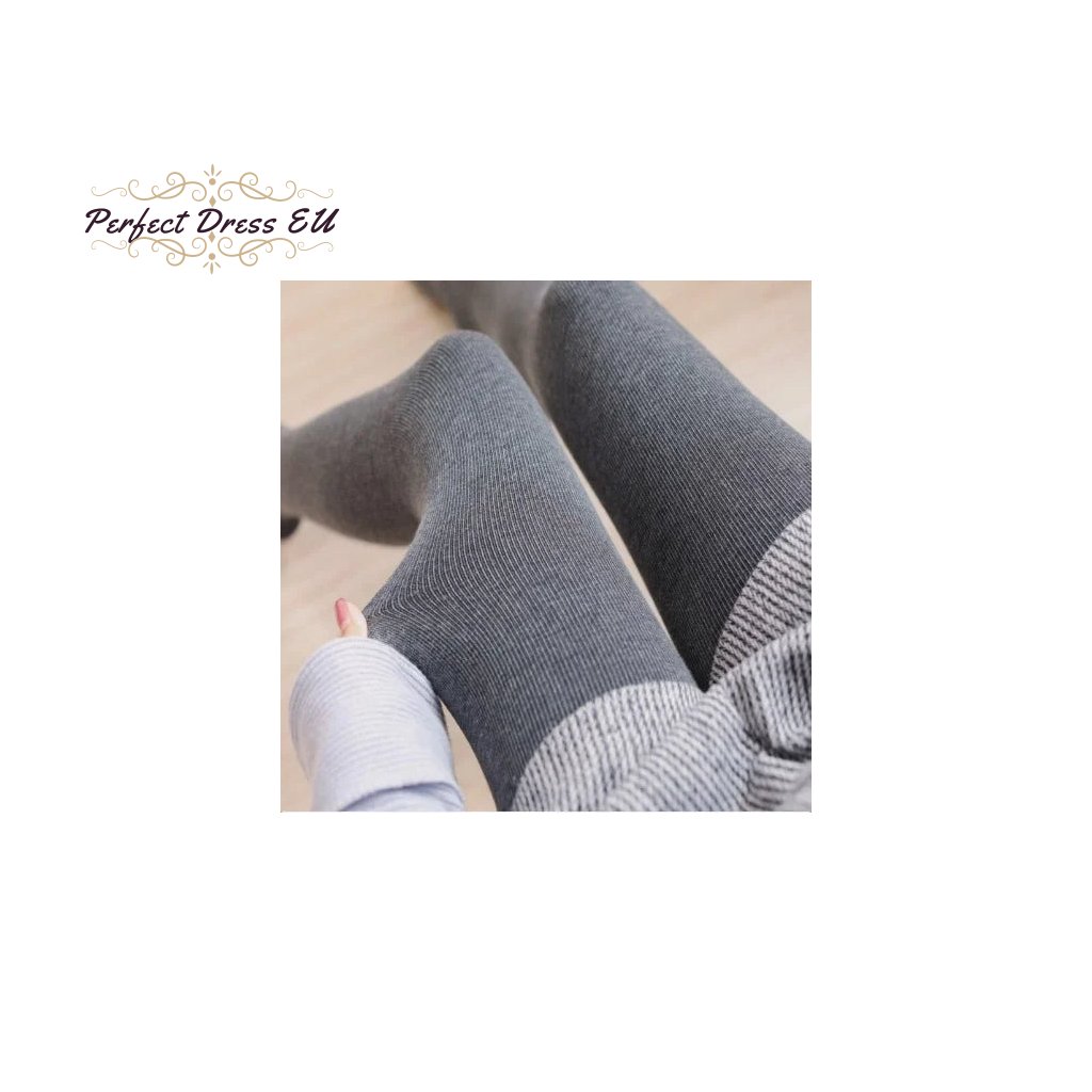 Zimní zateplené pruhované legíny – vysoký pas, hřejivé
