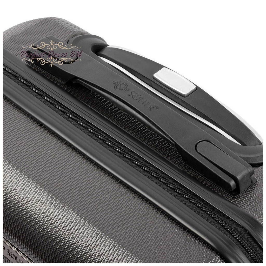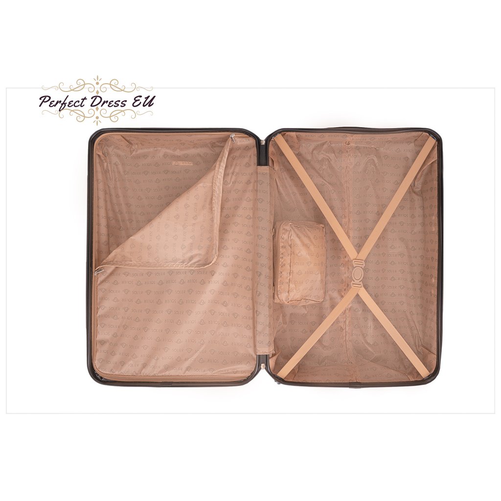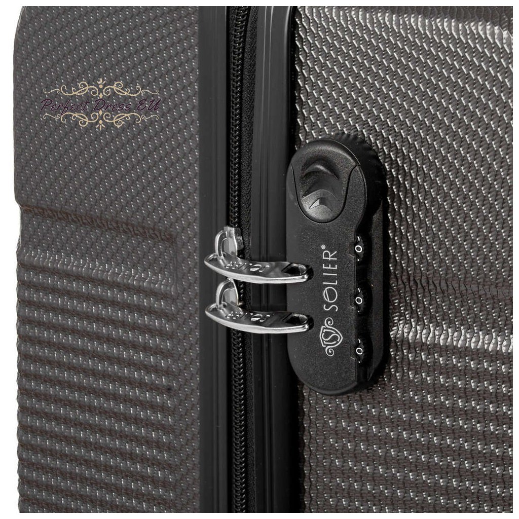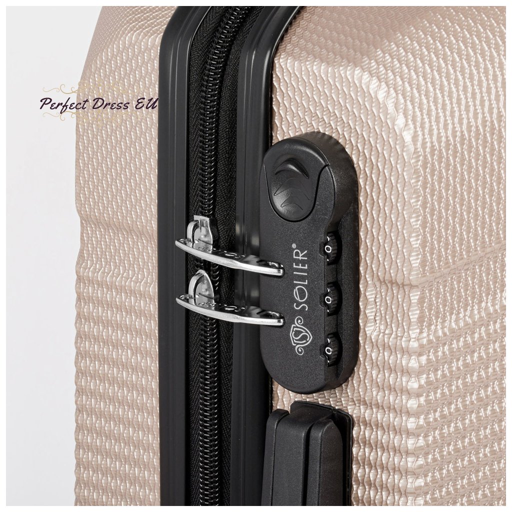 - Kufr SOLIER je navržen speciálně pro náročné zákazníky. Moderní a lehký model je vyroben z pevné a odolné tkaniny (ABS Plus) s teleskopickou rukojetí. Kufr je vybaven kódovým zámkem, který chrání vaše věci před krádeží. Čtyři kaučuková kolečka zaručují stabilitu a lehkost. Interiér je vybaven signovanou podšívkou rozdělenou zipem na dvě komory.